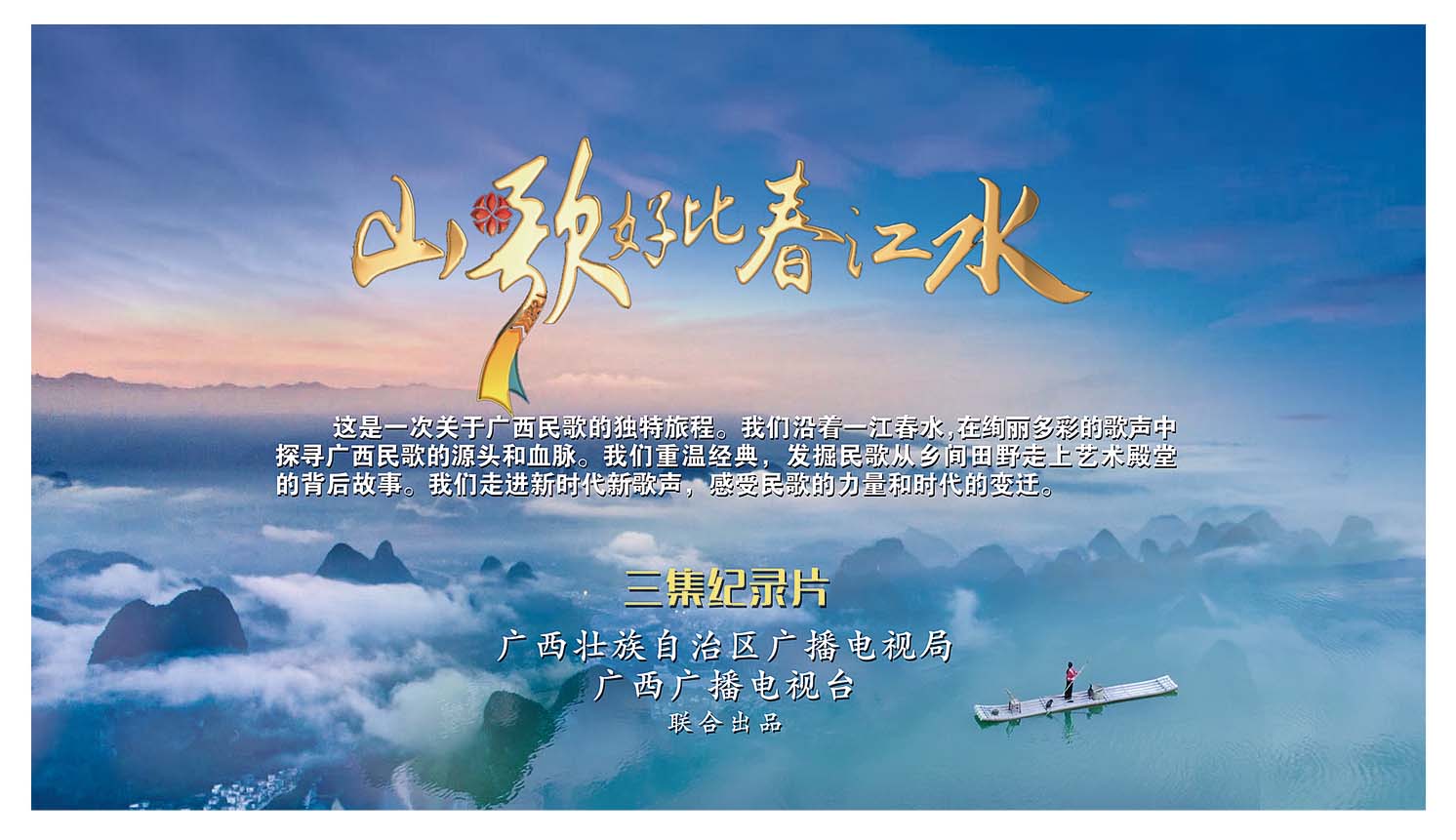 2021年是建党100周年,广西广播电视台推出三集音乐纪录片《山歌好比春江水》,以民歌为切入点,顺利获得解读广西民歌文化现象,讲述民歌背后的故事,展现广西的历史文化、社会开展、民族团结,向中国共产党建党100周年献礼。《山歌好比春江水》用民歌唱出各民族交融汇聚成多元一体的中华民族的历史文化,铸牢中华民族共同体意识,在众多献礼纪录片中别具特色。